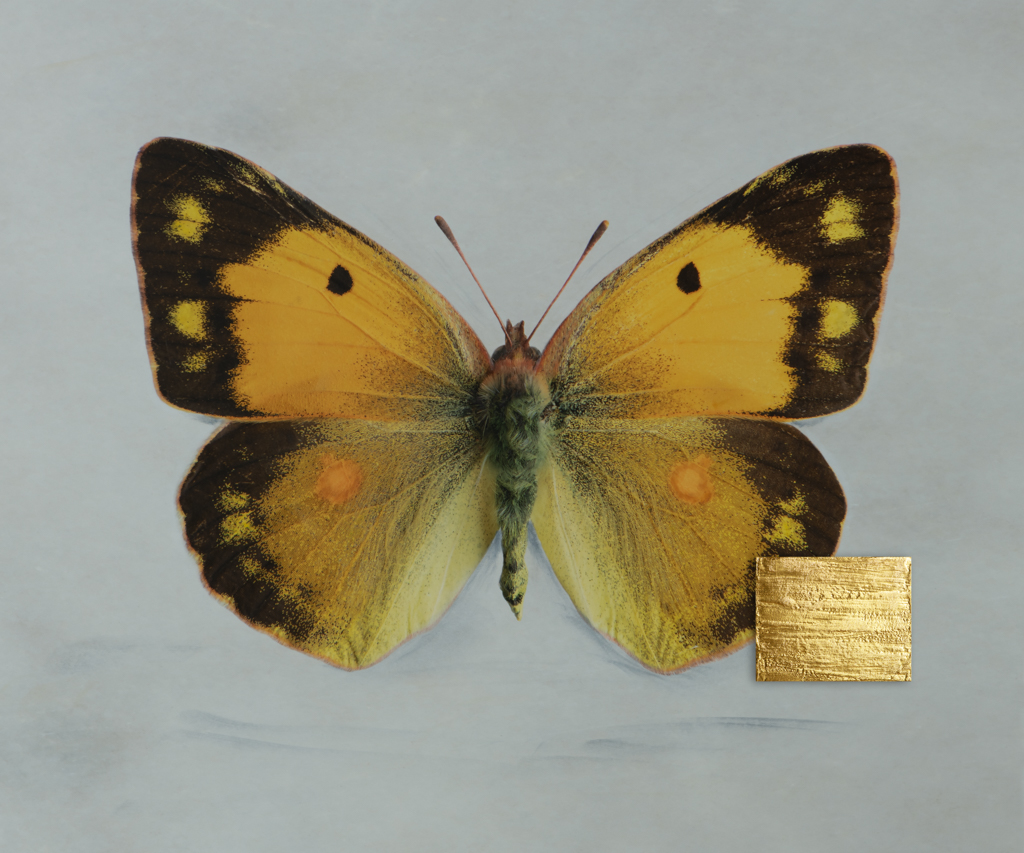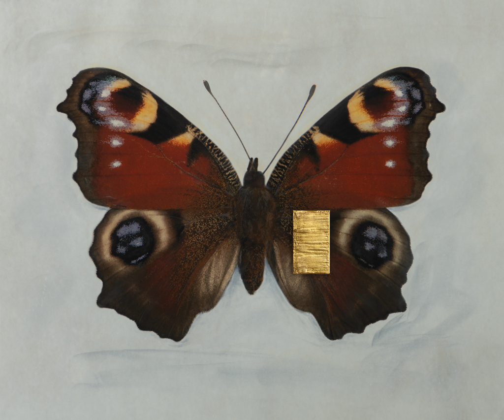 Three-dimensional gold elements overlay parts of the butterflies, symbolizing their disappearance while drawing attention to the value of nature and humanity’s responsibility to protect it. At the same time, the butterflies remain visible – a reminder that loss is not always final and that hope endures.