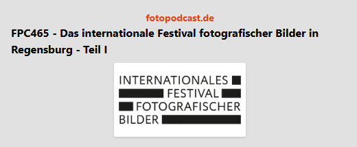 Listen to the podcast of Fotopodcast.de (FCP465) about the exhibition White Noise at the Galerie Lesmeister in Regensburg - a partner exhibition of the International Festival of Photographic Images. The conversation turns to the show at 1:18:20 and to my work at 1:24:32.